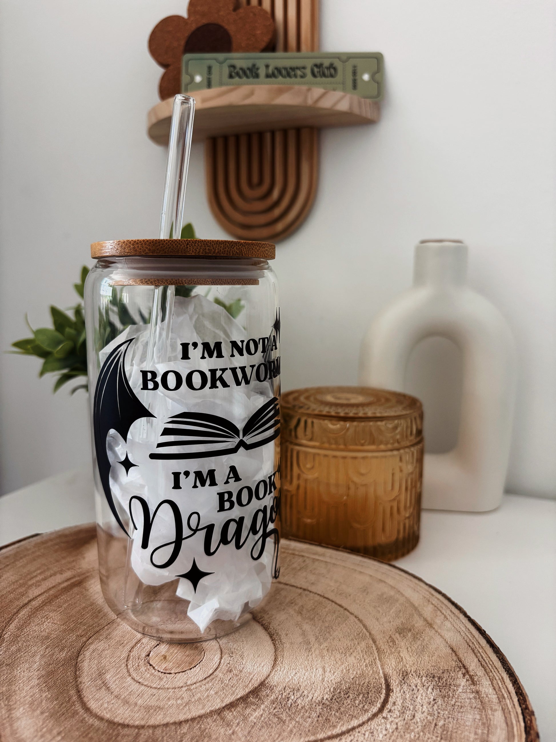 🔥 I’m not a Bookworm – I’m a Book Dragon! 🔥 | Glastumbler | 475ml | incl. Bambusdeckel und Glasstrohhalm
