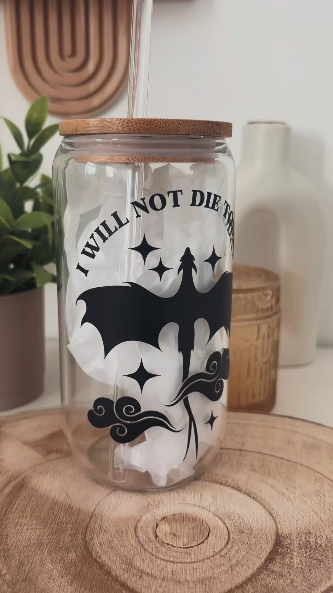 „I will not die today“ 🐉🖤| Glastumbler | 475ml | incl. Bambusdeckel und Glasstrohhalm